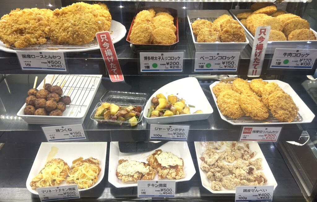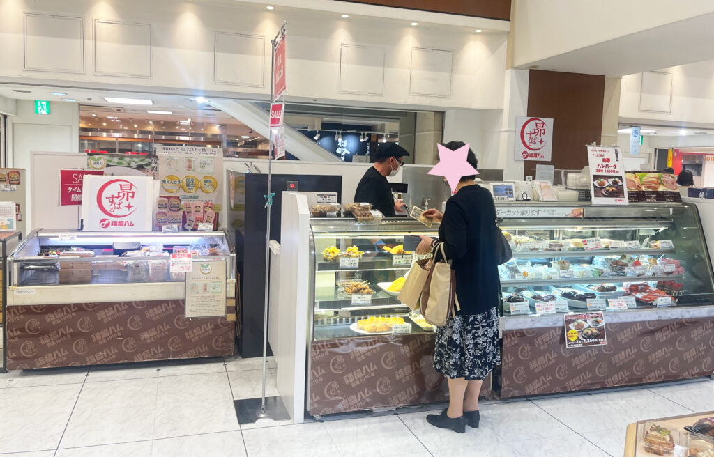 ハム・ソーセージの他、揚げたて惣菜や人気の肉厚ハンバーグもあります。