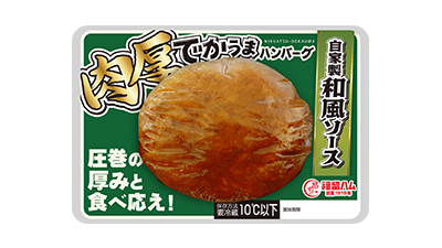 肉厚ハンバーグをソースと一緒に入れる。切り込みを入れたカマンベールチーズを入れる。