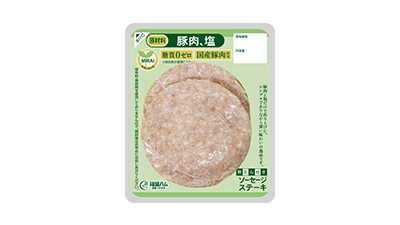 フライパンにMIRAI 無えんせきソーセージステーキを入れ、こんがりと焦げ目がつくまで焼く。